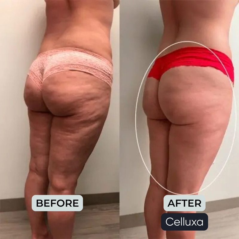 Clinical evidence shows that Celluxa increases collagen production by up to 70% and significantly reduces the appearance of cellulite and skin irregularities, effectively rejuvenating skin by as much as 20 years.